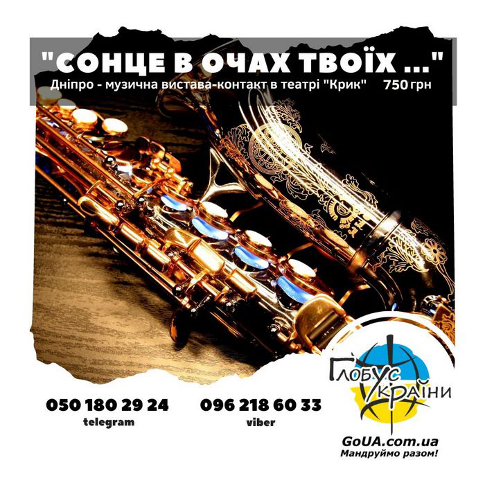 15:00 - ЗАВІСА! Перед Вами романтичний музичний спектакль-контакт "Сонце в очах твоїх ... "Поезія. Роздуми. Музика. Саксофон. "Я хочу говорити з вами про любов!" - звучить на початку вистави. Куди приведе ця розмова не відомо нікому.