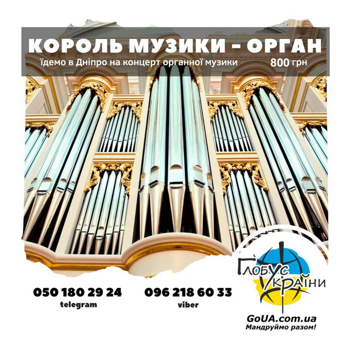 08.11.2025 - Запрошуємо всіх до Дніпра на концерт органної музики "Світ органових шедеврів". Орг. збір: 800 грн
