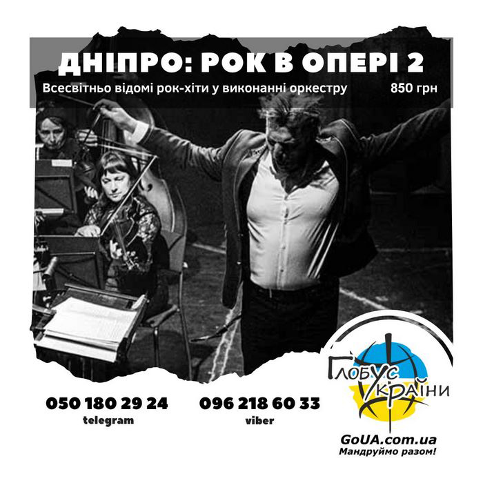 17:00 - ЗАВІСА! Починаєтсья шоу "Рок в Опері-2" в Дніпровському Театрі Опери та Балету. На сцені театру прозвучать всесвітньо відомі рок-хіти, які стали класикою сучасної музики, у новому виконанні. Музичні композиції улюблених гуртів, таких як "Led Zeppelin", "The Beatles", "Pink Floyd", "Scorpions", а також українських колективів "Океан Ельзи" та "The Hardkiss", виконають солісти опери, артисти хору, симфонічний оркестр та дитячий хор театру.