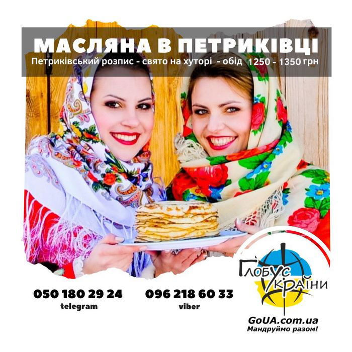 21.02.2026 - їдемо на МАСЛЯНУ в Петриківку! Козацький хутір + музей Млинці , посвята в справжні козаки, хороводи, ярмарок, опудало зими, виступ козаків, танці, екскурсія хутором, Петриківський розпис, майстер клас, пісні, знову млинці - так, це МАСЛЯНА на козацькому хуторі! Орг. збір: 1250 - 1350 грн